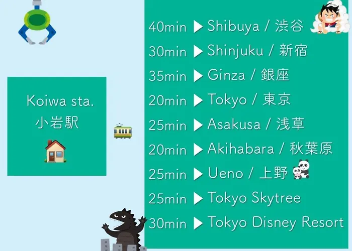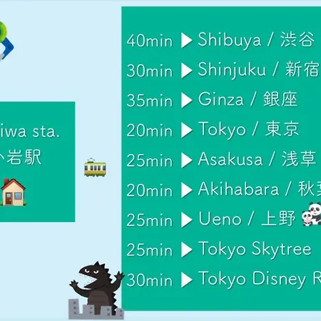公寓距离龜有公園有10分钟的车程,距离柴又公寓有25分钟的步行路程。 这套公寓坐落于江户川区。 Koiwa Detached House 小岩駅にある戸建のおうち公寓距离Zenzen 及Hana No Mai和其他餐厅有不到350米。 公寓附近有两7-欢迎光临龟有两津像;Catholic Koiwa Church也在它旁边。